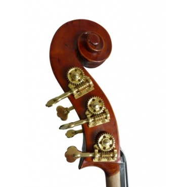 Der Kontrabass vollmassiv Violinenform 5 Saiter von Gebo ist ein komplett handgearbeitetes und massives Instrument in Violinenform mit einem ausgezeichneten Klangbild. Die braune Matt-Optik in antikem Design wirkt besonders edel. Einzel-Mechaniken, ein höhenverstellbare Stachel und ein Ebenholz Griffbrett sowie hochwertige Evah Pirazzi Besaitung erlauben dem Musiker ein jederzeit besonderes Spielgefühl. In der hauseigenen Gedo Streicherwerkstatt wird der 5-saitige 3/4 Kontrabass spielfertig eingerichtet.