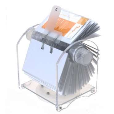 Mit dieser Rotator Rotationskartei von Genie hat das Chaos ein Ende. Bis zu 400 Visitenkarten lassen sich in dem praktischen Bürohelfer übersichtlich verstauen. Die insgesamt 200 Plastikhüllen sind einfach auszutauschen. Hierdurch besteht die Möglichkeit das System ganz nach Bedarf auch durch zusätzliche Hüllen zu erweitern, allerdings lässt sich das Rotationsrad bei voller Kartei etwas schwergängig drehen.