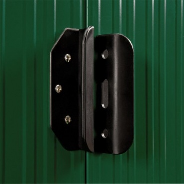 Geöffnet wird dieser Geräteschuppen mittels Schiebetüren, wodurch beim Öffnen kein Raumverlust gegeben ist. Die Eingangsöffnung beträgt 91 x 153 Zentimeter. Für eine gute Luftzirkulation sorgen vier Belüftungsöffnungen, die im oberen Bereich an der Vorder- als auch Rückseite zu finden sind. Das Dach ist mit einem Kantenschutz versehen. Zusätzlich verfügt dieses Gartenhaus über eine Aluminium-Bodenleiste, was das Verlegen des gewünschten Fußbodens erleichtert.