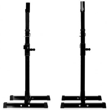 Dieser Hantelständer verfügt über zwei höhenverstellbare Ablagen für Curlhanteln und Langhanteln. Der Ständer ist in einer sicheren Bauweise gebaut, er kann mit max. 100 kg belastet werden. Die Höhe der Zwischenablage lässt sich 6-stufig verstellen, die obere Ablage 15-stufig. Der Stahlrahmen ist robust und standfest, die Befußung überzeugt durch bodenschonende rutschsichere Eigenschaften.