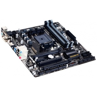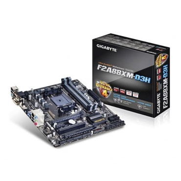 Das Gigabyte GA-F2A88XM-D3H Mainboard ist mit einem FM2+ Sockel ausgestattet und somit kompatibel zu den entsprechenden AMD-Prozessoren. Die vier DIMM-Slots für DDR3 SDRAM Riegel ermöglichen die Nutzung von bis zu vier Riegeln mit je bis zu 16 Gigabyte Kapazität. Außerdem wird der Dual-Channel Betrieb unterstützt. Als BIOS kommt ein AMI EFI System auf dem Board zum Einsatz.