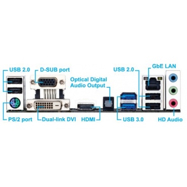 Für die Grafikausgabe kann wahlweise die bereits vorhandene OnBoard-Grafikeinheit mit VGA-, DVI- und HDMI-Ausgang genutzt werden oder eine zusätzliche Grafikkarte in einem der PCIe x16 Slots eingesetzt werden. Auch der Betrieb mit zwei AMD-Grafikkarten via CrossFire wird unterstützt. Auf Wunsch können dank entsprechend vieler SATA-Schnittstellen bis zu acht Laufwerke oder Festplatten betrieben werden, während nach außen hin bereits sechs USB-Schnittstellen zur Verfügung stehen, von denen zwei den USB 3.0 Standard unterstützen.