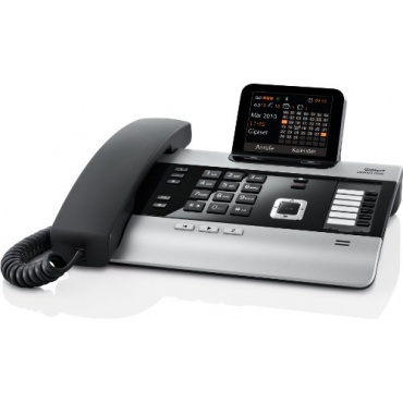 Das Gigaset DX600A ISDN Telefon titanium verfügt über eine praktische Kalenderfunktion die auf einem übersichtlichen TFT-Farb-Display angezeigt wird. Die Möglichkeit Gespräche zu halten, zu makeln oder weiterzuleiten ist ebenso gegeben, wie die Möglichkeit, eine Konferenzschaltung von bis zu 3 Teilnehmern zu errichten. Der Telefonbuchspeicher kann 500 Einträge erfassen und kann mit vielen gängigen PC-Softwares synchronisiert werden. Durch den ISDN-Anschluß kann das Telefon auch auf online-Branchenverzeichnisse zugreifen. Das Gerät ist SMS-fähig und kann mit Mobiltelefonen gekoppelt werden.