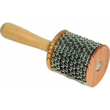 Diese Cabasa wurde sorgfältig gefertigt und ist somit auch qualitativ sehr hochwertig. Der Name Kürbisrassel, wie das Instrument auch noch bezeichnet wird, sagt ebenfalls etwas über den Klang aus. Es eignet sich sehr gut um rhythmische Töne zu erzeugen und so den Takt eines Musikstückes zu begleiten. Der Handgriff wurde aus Holz gefertigt du verfügt über ein zylinderförmiges Kopfstück, welches mit einem Profilblech belegt ist. Auf diesem Blech liegen sehr dicht bei einander Metallperlenketten, die rauschende Klänge erzeugen.