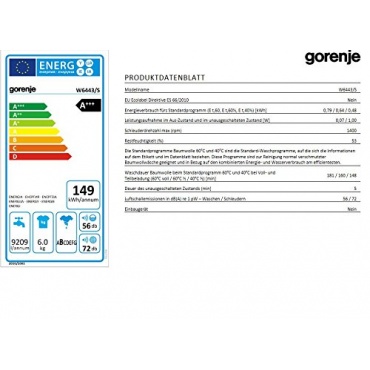 Es ist eine leistungsfähige Waschmaschine mit einem Fassungsvermögen von 6 kg und einer Energieklasse von A+++, die Rede ist von der Waschmaschine Modell W6443/S vom Hersteller Gorenje. Neben diesen zwei Faktoren, zeichnet sich die Waschmaschine noch durch weitere aus, wie man der weiteren Beschreibung entnehmen kann.