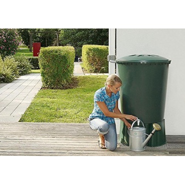 Die klassische Regentonne für den Garten in grüner Farbe ist ein praktischer Assistent in Sachen Bewässerung im Garten. Mit dem aufgesammelten Regenwasser spart man Geld und es ist eine billige Alternative zum Leitungswasser. Die stabile Konstruktion des Bodens und des Stapelrandes bieten ein hohes Standvermögen und die Montage des Auslaufhahns ist spielend einfach Dank der Montagefläche mit Bohrbild.