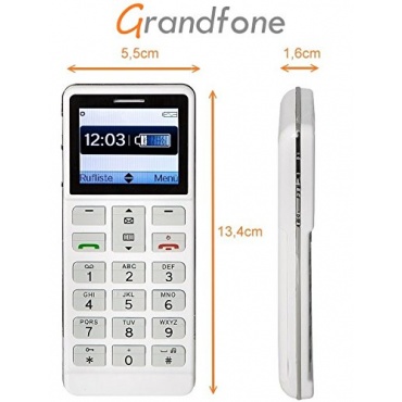 Das mit einer SOS-Notruftaste ausgestattete Grandfone Seniorenhandy ist Simlock-frei und verfügt über die Bluetooth-Funktion. Die besonders großen und sehr übersichtlich angeordneten Tasten des Grandfone erleichtern insbesondere älteren Menschen die Bedingung dieses schönen Seniorenhandys. Dieses Gerät erhielt die deutsche iF Design Auszeichnung. Überzeugend ist auch das elegante Design des Grandfone.