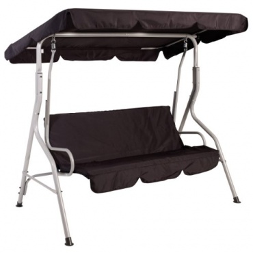 Die Hollywoodschaukel verfügt über ein leichtes Stahlgestell, dessen silberne Farbe perfekt mit dem Bezug aus schwarzem Textilene und Polyester harmoniert. Die Schaukel ist wetterbeständig und schützt an sonnigen Tagen vor UV Einstrahlung und kann auch leichten regen abhalten. Man kann die Schaukel auch bei schlechtem Wetter im Garten stehen lassen. Das klassische, schlichte Design dieser Hollywoodschauken passt wunderbar zu anderen Outdoormöbeln, so dass dieses Modell für jeden Garten geeignet ist.