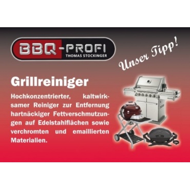 Der Grillreiniger von BBQ- Profi ist ein hochwirksamer, stark konzentrierter, kaltwirksamer Reiniger. Er entfernt selbst hartnäckige Flecke wie Fettflecke oder Grillverkrustungen. Das Aufheizen des Reinigers ist nicht von Notwendigkeit. Er ist geruchslos und sofort einsetzbar. Sehr gut geeignet für Grill, Grillrost, Backofen und Herdplatten, sowie für andere Oberflächen.