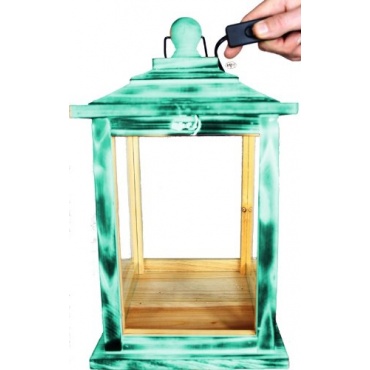Große KLG-OFOS-TÜRKIS Holzlaterne, mit Beleuchtung