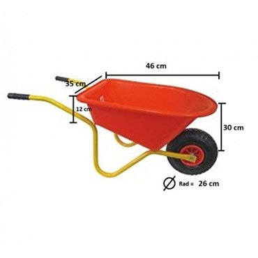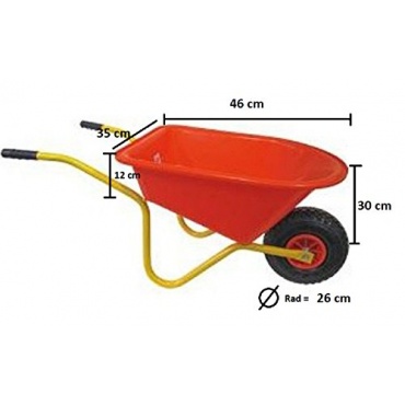 Mit HIlfe dieser der sehr stabilen XXL Schubkarre können bereits die Kleinen mit Begeisterung bei der Gartenarbeit mithelfen oder darin einfach ihr Spielzeug herumfahren. Für Kinder ist diese riesen Schubkarre mit ihrem großen Rad und breiter Lauffläche optimal, um im Garten beziehungsweise im Freien zu spielen. Die rote Schubkarre mit den gelben Stangen und den schwarzen verdickten Griffen wird bestimmt zum Lieblingsspielzeug des Kindes werden.