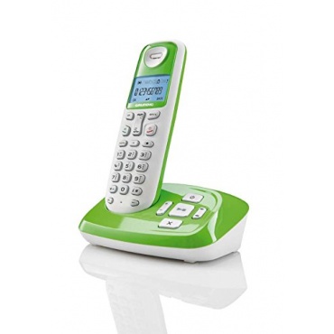 Das Grundig D210A ist ein schnurloses DECT Telefon und besticht durch seine außergewöhnliche Linienführung in grün-weiß. Allein durch seine markante Farbgebung wird es zum absoluten Blickfang und wirkt ganz anders als andere Telefone. Das Grundig D210A besticht jedoch nicht nur in seinem Design, denn auch seine Ausstattung kann sich durchaus sehen lassen. So verfügt es beispielsweise über eine Tastensperre, einen Wecker und einen integrierten Anrufbeantworter. In Räumen hat es eine Empfangsreichweite von bis zu 50 Metern, im Freien jedoch bis zu 300 Metern.