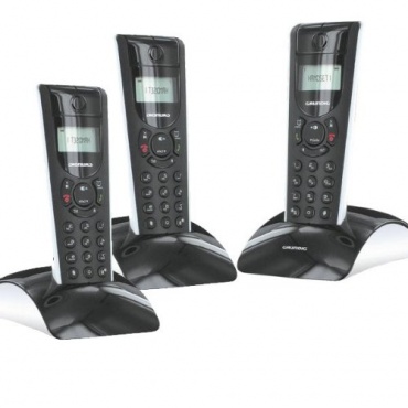 Das Selio Trio Schnurlostelefon von Grundig ist ein Analog Telefon mit Basisstation. Es bietet eine Freisprechfunktion, ein Telefonbuch für bis zu 40 individuellen Einträgen, eine Sperr- und Clipfunktion sowie eine Anruferliste. Das Display des Mobilteils ist alphanumerisch und beleuchtet. Zwei Mobilteile können angeschlossen und in betrieb genommen werden.