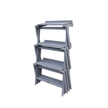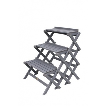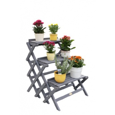 Aus Holz ist die Habau 2824 Blumentreppe, klein gefertigt. Die Blumentreppe aus Holz ist klappbar, so kann man sie jederzeit platzsparend wegräumen, wenn man sie nicht mehr braucht. Die Blumentreppe verfügt über drei Stufen, die Abmessungen sind 60 x 70 x 71cm. Farblich ist die Blumentreppe in einem Grau gehalten. Da die Blumentreppe lasiert ist verfügt sie über einen Wetterschutz und kann so auch im freien aufgestellt werden. Das Gewicht der Blumentreppe beträgt sieben Kilo.