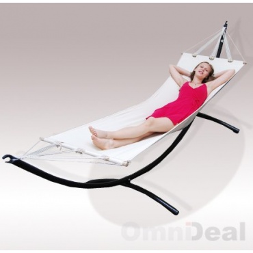 Die Aufhängung am Gestell gestaltet sich schnell und unkompliziert und die Hängematte hat eine Tragkraft bis zu 100 Kilo. Die formschöne Hängematte mit Gestell passt sich dem modernen Wohnsitz perfekt an und sorgt für unvergleichlichen Komfort, den man über lange Zeit hinaus genießen kann.