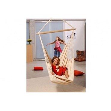 - Der Hängesessel der Firma Amazonas besitzt eine robuste Verarbeitung. Mit nur einer Aufhängung lässt sich ein Gebrauch realisieren. Die Optik erweckt Assoziationen zu Sommer und Strand.