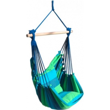 Dieser wunderschöne Hängesessel in den Farbe blau und grün lädt zum Entspannen und Verweilen ein. Ob in Haus, Garten oder auf dem Balkon: Mit diesem Sessel schafft sich jeder seine persönliche Wohlfühloase. Die Sitzschaukel kann bequem an der Decke installiert werden, oder aber an einem tragenden Ast des Lieblingsbaumes im Garten. Somit ist der Gartensessel mit einem Gewicht von nur 1,9 kg flexibel und mobil einsetzbar.