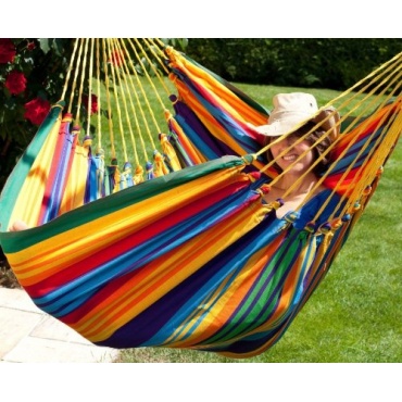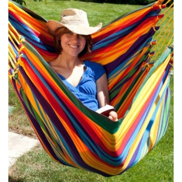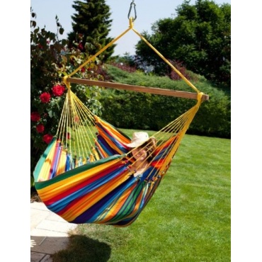 Diese Hängematte überzeugt in erster Linie mit ihrer großen Liegefläche und einer Tragkraft von rund 160 Kilogramm. Hergestellt aus hochwertigen Materialien, ist der Hängesessel ein perfekter Ort zur Erholung und Entspannung. Selbst bei einer Körpergröße von 1,70 Meter, bietet der Cayo Gigante Paradiso Hängesessel noch eine gute und komfortable Liegefläche. Hergestellt wurde der Hängesessel in Handarbeit in Südamerika.