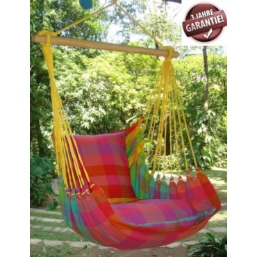 Dieser gemütliche Hängesessel der Firma Hobea Germany ist mit seinem bunten Design und seinen bequemen Kissen der Star in jedem Garten. Junge und alte Menschen genießen das Sitzen und Auspannen in diesem Sessel gleichermaßen. Die Tuchgröße dieses Sessels beträgt 175 cm x 127 cm. Die Qualität des Produkts wurde durch den TÜV geprüft und ist unter Beachtung der gängigen Umweltstandards gefertigt worden.