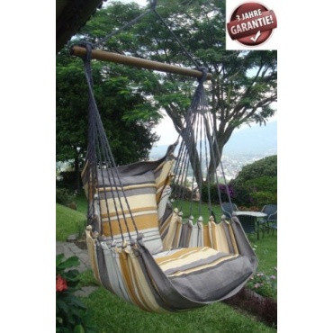 Füße hoch, Entspannung an. Mit diesem bequemen Hängesessel der Marke Hobea Germany sind ruhige Stunden in Garten, Haus oder auf dem Balkon garantiert. Der lange Spreizstock trägt das Tuch in modischen Grau- und Brauntönen und sorgt für optimale Balance. Die Sicherheit des Produkts wurde, bei sachgemäßer Montage, vom amerikanischen TÜV geprüft und zertifiziert.