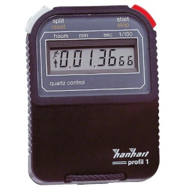Die Hanhart Profil 1 stoppt die Zeit auf eine Hundertstel Sekunde genau. Die Anzeige des LCD-Displays ist sehr gut Ablesbar und das Gehäuse selbst liegt gut in der Hand. Die Start- und Stopptaste unterscheiden sich zudem farblich voneinander. Aufgrund ihrer Genauigkeit und Robustheit hat die Profil 1 alle Eigenschaften zu bieten, um als Zeitmesser in diversen Sportarten zu dienen. Als einzige Zusatzfunktion bietet die Starttaste zugleich auch die Anzeige von Zwischenzeiten. Ein Speicher, um zum Beispiel mehrere Rundenzeiten digital festzuhalten fehlt leider.