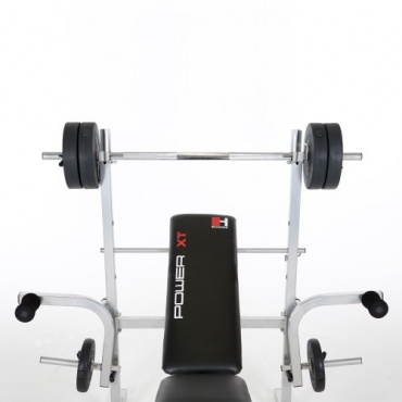 Die Hantelbank POWER XT von Hammer ist aus einem stabilen Stahlrohr Hauptrahmen gertigt und mit einer kratzfesten Pulverbeschichtung ummantelt. Die Rückenlehne ist für Flachbank und Schrägbankdrücken vierfach verstellbar.