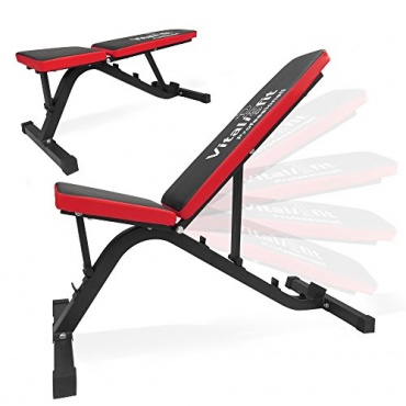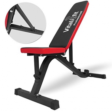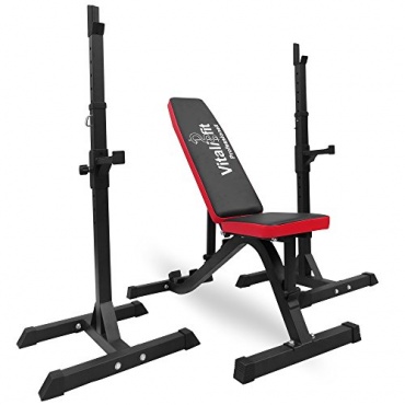 Dieser Gewichtsständer von VitaliFit ist sehr solide. Denn man bekommt nicht nur zwei Gewichtsständer geliefert. Man bekommt auch eine Schrägbank. Diese kann man natürlich idealerweise zwischen den Hantelständern platzieren und auch auf eine gewünschte Breite bringen. Zudem lassen sich die Hantelständer in 16 verschiedenen Höhen einstellen, wodurch man auf der Schrägbank auch in den unterschiedlichsten Positionen trainieren kann.