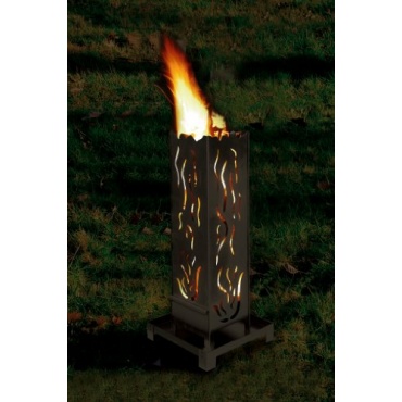 Die Feuersäule Fire V von Heibi ist aus 2 mm dickem Stahl gefertigt und misst 25 x 25 cm. Inklusive der 40 x 40 cm großen Bodenplatte, durch die die Feuersäule auch auf empfindlichen Untergründen genutzt werden kann, ist sie 107 cm hoch. Durch die Verwendung von hochwertigem Stahl und mit einem Gewicht von 18 kg ist die Feuersäule sehr stabil. Sie wird mit Brennholz befüllt.