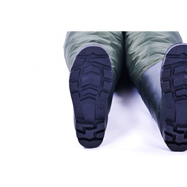 Aus Nylon gefertigt ist die Wathose in der Größe 45. Wobei die Wathose auch in anderen Größen, nämlich von 40 bis 46 geliefert werden kann. Bei der Wathose sind alle Nähte von Innen verschweißt, so ist gewährleistet das die Wathose auch wasserdicht ist. Für einen sicheren und guten Stand mit der Wathose sorgt die rutschhemmende Filzsohle. Befestigt wird die Wathose an seinem Gürtel, dafür ist die Wathose mit zwei Laschen ausgestattet. Farblich ist die Wathose in einem sehr dunklen Grün gehalten. Preislich ist die Wathose sehr günstig.