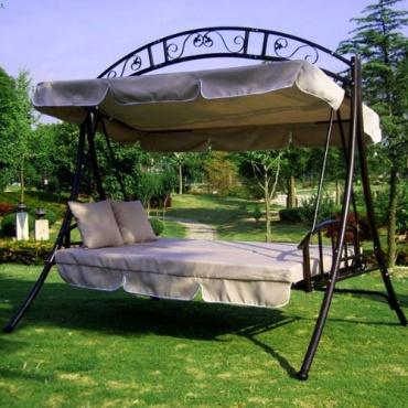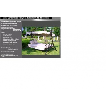 Die Schaukel mit Bettfunktion lässt sich mit wenigen Griffen ausklappen. Dank der extra breiten Liegefläche von 180 x 110 Zentimeter finden auch zwei Personen ausreichend Platz für einen gehobenen Liegekomfort vor. Sie Sitzfläche beträgt 90 x 110 Zentimeter. Als Sonnenschutz dient ein integriertes Sonnendach, das über die gesamte Fläche an sonnigen Tagen schützt. Die Luxus Hollywoodschaukel mit einem Gewicht von etwa 30 Kilogramm und hält einer Belastung von bis zu 200 Kilogramm stand.