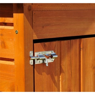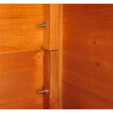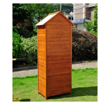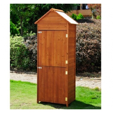 Das Gerätehaus von homcom ist aus Massivholz gefertigt. Es ist 190 cm hoch, 66 cm breit und hat eine Tiefe von 45,5 cm. Der Geräteschuppen verfügt über 2 Türen, die übereinanderliegen und jeweils ein Maß von 60 x 71 cm haben. Die Türen lassen sich unabhängig voneinander öffnen und verfügen jeweils über ein Türschloss. Das Gerätehaus ist wetterfest und witterungsbeständig.
