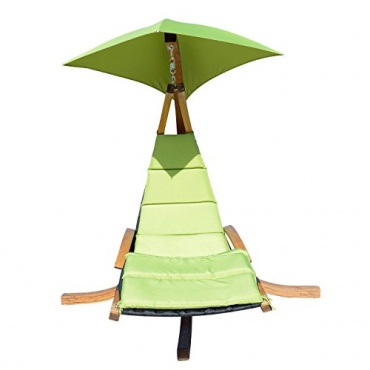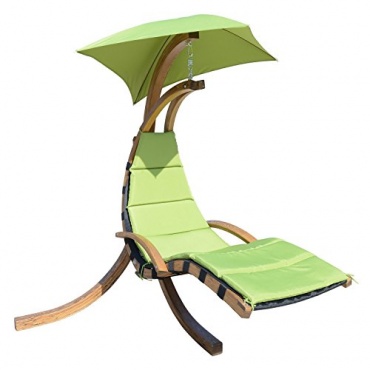 Dieser Holz Hängesessel ist mithilfe einer Kette an einem stabilen Dreibein aus Holz angebracht. Auf dem Dreibein befindet, sich zudem noch ein kleiner Sonnenschirm. Die hängende Gartenliege hat eine S-Form. Es ist also gar nicht anders mit dieser Liege möglich, als sich einfach draufzulegen. Eine hochwertige Auflage ist bereits dabei und erhöht den Komfort der Liege noch erheblich. Die Lieferung erfolgt teil montiert ist aber, mithilfe der Anleitung kein Problem und innerhalb von kürzester Zeit zu meistern.