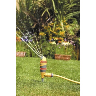 Wer für seinen Garten oder seine Landwirtschaft einen schönen und praktischen Rundsprinkler benötigt, der ist mit dem Hozelock 2335P0000 Rundsprinkler Pro 314 m2 gut aufgehoben. Er lässt sich sowohl zum Sprengen von Rasenflächen, aber auch für eine Vielzahl anderer Zwecke einsetzen. Der Sprenkler lä#sst sich individuell auf die jeweilige Fläche einstellen. Und da er einfach in den Rasen hineingesteckt werden kann, lässt er sich überall dort einsetzen, wo er gebraucht wird. Der Kreisregner ist individuell regulierbar und dreht sich um 360 Grad.