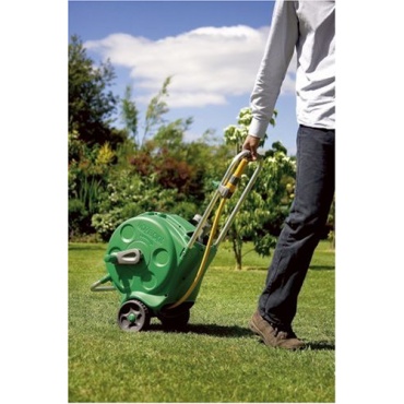 Bei dem Hozelock 2416 0000 Compact Cart handelt es sich um einen kompakten Schlauchwagen mit 30 m Schlauch. Der Schlauch hat einen Durchmesser von 11,5 mm und ist somit für die täglichen Arbeiten im Garten ausreichend. Die leichtgängige Aufrollmechanik macht es möglich, dass man den Schlauch jederzeit schnell und einfach verstauen kann, ohne sich dabei die Hände schmutzig zu machen. Der geschlossene Schlauchwagen verfügt über ein Sichtfenster, sodass man sehen kann, ob der Schlauch gerade aufgerollt wird.