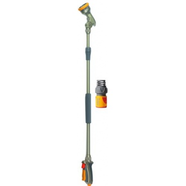 Hozelock Tricoflex 06426412 Teleskopgießstab aus Metall mit acht Sprühfunktionen. Durch die Teleskopfunktion kann der Gießstab um 45 cm verlängert werden. Damit ist eine größere Reichweite gegeben. Ein robustes Design mit klaren Formen und einem Griff aus pulverbeschichtetem Spritzguss-Metall mit einer Ein-, Aus-Arretiertaste durch die die Wasserstoppfunktion bedient wird.