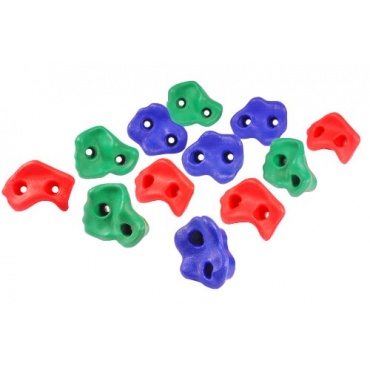 Das Set mit 12 Klettergriffen der Marke Hudora ist speziell für Kinder entwickelt. Die 12 Griffe sind in 3 verschiedenen Formen und Farben enthalten. Die Farben Rot, Blau und Grün sind je drei mal im Set enthalten. Die Klettergriffe können sowohl im Innen- als auch im Außenbereich verwendet werden. Die Befestigung ist sowohl an Holz, als auch an Beton möglich.
