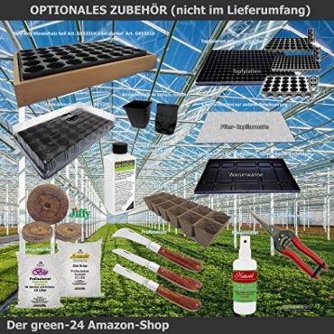 Das Hydroponik 576 Zimmergewächshaus XL von,GREEN24 bietet professionelle Dimensionen bei der Pflanzenzucht. 576 Plätze bedeutet es können gleichzeitig 576 Jungpflanzen gezüchtet werden. Dieses System ist optimal geeignet, wenn man eine große Anzahl von Pflanzen gleichzeitig anziehen möchte und eine große Menge an Jungpflanzen braucht. Das System verfügt über eine ausgeklügelte Bewässerung, die automatisch die Pflanzen immer mit der richtigen Menge Wasser und somit Nährstoffen versorgt. Die Keimung erfolgt schnell denn in diesem geschlossenen System entsteht ein Klima dass den Pflanzensamen innerhalb weniger Tage keimen und sprießen lässt.