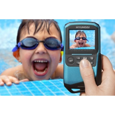 Diese handliche Unterwasserkamera von Hyundai ist perfekt für schöne Aufnahmen am Pool geeignet. Die Videokamera ist bis zu einer Tiefe von 3 Metern wasserdicht und produziert dank seines dreifach Digitalzooms wunderschöne Bilder. Die Unterwasserkamera kann auch von Jugendlichen oder älteren Kindern bedient werden, da sein Handling sehr einfach ist. Der 2 Zoll LCD-Display sorgt für ein angenehmes Filmen auch unter Wasser.