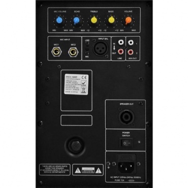 Des Weiteren verfügt die Box über einen separat einstellbaren Mikrofonbereich mit Echo-Effekt. Die Mikrofon-Lautstärke ist separat regelbar. Tragegriffe an der Seite erleichtern den Transport. Zum Schutz ist ein Metallschutzgitter vorhanden. Im Lieferumfang ist das Netzkabel enthalten. Die qualitativ hochwertige Box ist viele Jahre haltbar, man wird bei jedem Anlass voll zufrieden damit sein.