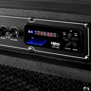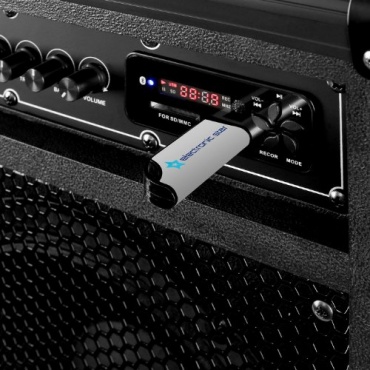 Mit dem vorhandenen AUX-Eingang können externe Audioquellen wie zum Beispiel ein CD-Player, ein MP3 Player oder auch ein Computer angeschlossen werden. Dank dem drahtlosen Receiver mit den beiden drahtlosen Mikrophonen ist es möglich, jederzeit Karaoke mit Freunden zu realisieren. So wird der Lautsprecher zum absoluten Party-Highlight. Mit einem integrierten Radiotuner für UKW und MW kann jederzeit auch Musik gehört werden.