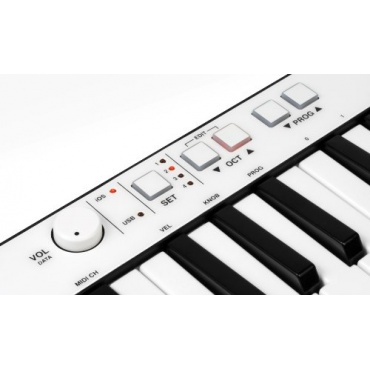 Vorhanden sind der Edit-Mode für Transpose, Programm und Control Changes, Pitch Bend, Modulationsrad und ein Oktavenumschalter. Sample Tank free, iGrand Piano free (für iOS) und Sample Tank 2L (für Mac/PC) sind inklusive. Bei dieser Version ist auch ein Lightning Kabel vorhanden. Das Gerät ist kompatibel zu allen Apple Geräten