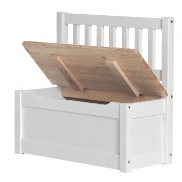 Die aus massivem Kiefernholz gefertigte Truhenbank Tim von Impag besticht mit zahlreichen Funktionen. Die Sitzbank mit den Maßen von 55 x 60 x 30 ist hochwertig und kindgerecht verarbeitet und garantiert auch aufgrund der speichel-, schweiß- und abriebfesten sowie lebensmittelechten Lackierung Sicherheit nach EN 71-3. Die großzügige Sitzfläche lässt sich als Klappe der Spieltruhe öffnen und mit einem Feststellmechanismus für die Sicherheit Ihres Kindes fixieren. Die Kindertruhenbank motiviert Kinder zur Ordnung und fördert soziales Verhalten.