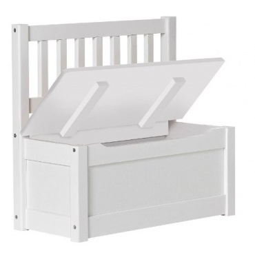 Die Impag® Kindertruhenbank ist ein wunderschönes und schlichtes Möbelstück für das Kinderzimmer. Sie in einem Strahlendem weiß gehalten und passt somit wunderbar in Zimmer für Jungen als auch Mädchen. Die Bank besteht aus einer Sitzfläche und einer Lehne unterhalb der Sitzfläche befindet sich eine relativ große Truhe. An diese gelangt man, wenn die Sitzfläche hochgeklappt wird. Einen Feststellmechanismus gibt es auch, der es erleichtert die Truhe zu befüllen oder zu entleeren.