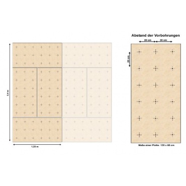 Die Fläche der Kletterplatten insgesamt beträgt ca. 2,88 m². Zur Herstellung wurde das Material Multiplex Birke verwendet in einer Stärke von 18 mm. Die Frontseite ist lackiert, das Abwischen ist möglich. Es sind 72 Befestigungspunkte für Klettersteine vorbereitet. Die Einschlagmuttern für die einzelnen Klettersteine sind bereits vormontiert. Ebenso sind die Wand-Befestigungslöcher vorgebohrt. Die Belastbarkeit beträgt bis 150 kg je Platte.
