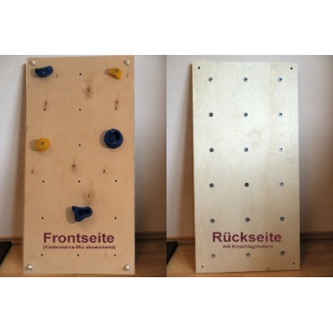 Diese Kletterwand eignet sich für Kinder und Erwachsene gleichermaßen. Sie besteht aus vier Wandplatten zu ca. 120 x 60 cm. Diese Kletterplatten müssen mit Dübeln und Schrauben an einer tragfähigen Wand befestigt werden. Hierzu eignet sich eine Ziegel- oder Betonmauer. Die Montage an Rigipswänden oder Ytong-Wänden ist leider nicht möglich. Eine Anbringung im Freien oder in feuchten Räumen ist ebenso nicht möglich.