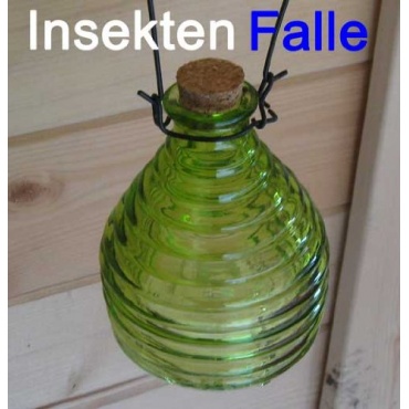 Die Glas-Insektenfalle von Land-Haus-Shop ist eine gelungene und umweltfreundliche Alternative zu giftigen Insektenschutzmitteln. Das 13 cm hohe Glas mit einem Bodendurchmesser von 9 cm besticht durch das unkomplizierte Handling. Mit einer süßen fruchtigen Flüssigkeit befüllt wird es am betroffenen Ort aufgehangen. Durch die Öffnung am Boden gelangen die Insekten zum begehrten Mahl, können diese jedoch nicht wieder verlassen. Nach dem Absterben der Insekten wird die Falle mittels der 3,5 cm großen Flaschenhalsöffnung, welche mit einem Korken verschlossen ist, gereinigt. So kommt die Flasche immer wieder zum Einsatz.