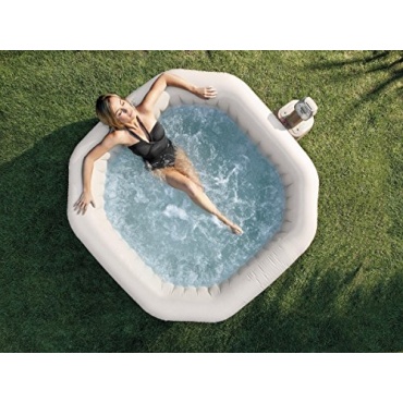 Der Intex 28414 Pure SPA 79 Zoll ist ein komplettes Set Whirlpool er ist für die Nutzung draußen konzipiert. Er besteht auch einer sehr starken und robusten PVC Außenhülle. Das Innere ist ebenfalls mit PVC ausgeschlagen. Es gibt in diesem Whirlpool alles, was man sich vorstellen kann, Massagedüsen und die Whirlpool typischen Bubbels. Der Pool hat eine integrierte Heizung und heizt sich automatisch auf.