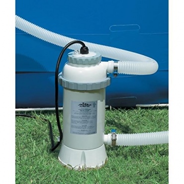 Der Pool Heater mit einer Leistung von 3000 Watt ist eine Zusatzheizung für Aufstellpools. Es besteht eine Möglichkeit Schwimmbadschläuche mit einem Durchmesser von 32 Milimeter an die 230 Volt Anlage anzuschliessen. Die Poolheizung kann an neuen oder bestehenden Filtersystemen angeschlossenw erden. Sie besitzt einen integrierten Durchfluss-Sensor. Die benötigte Mindestdurchflussleistung der Filterpumpe beträgt 1.900 Liter in der Stunde.