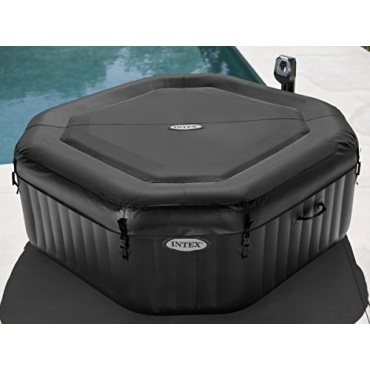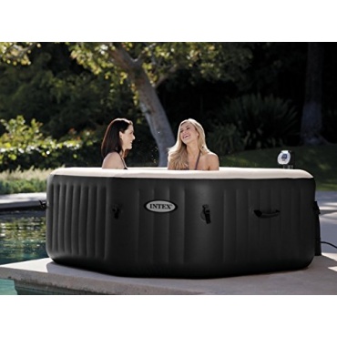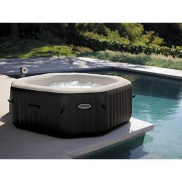 Der schwarze Intex Whirlpool Pure Spa Bubble Jet in Octagon Form, ist mit einem Salzwassersystem ausgestattet und hat ein Fassungsvermögen von 795 Liter Wasser. Die 120 Luftdüsen, sowie die vier Jetdüsen verwöhen den Körper mit Massagen und bauen Stress ab.