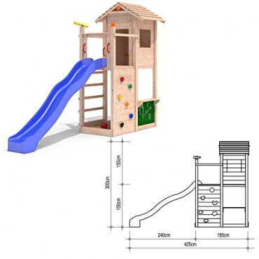 Der ISIDOR Picodo Spielturm ist aus chemisch unbehandeltem Holz und kann von jedem Selbst behandelt und gestrichen werden. Ein Streichen des Spielturms ist erforderlich, um dem Verrotten und der Pilzbildung vorzubeugen. Wenn der Bedarf besteht kann man optional Schaukelgestelle hinzufügen. Sicherheitshandgriffe und Pfostenkappen tragen zu einer hohen Sicherheit bei. Das Spielhaus verfügt über eine Türöffnung und eine Fensteröffnung.